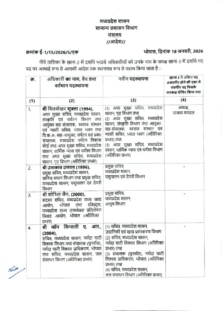 MP IAS Transfer: मध्य प्रदेश सरकार ने 18 जनवरी को एक साथ 26 आईएएस अफसरों के तबादले किए हैं. आईएएस की फेरबदल सूची एक ऐसा नाम चर्चा में आ गया जो अभी हाल ही में इंदौर कांड से जुड़ा था और वह नाम है दिलीप यादव का, जिन्हें अभी कुछ दिन पहले ही इंदौर आईएएस को पद से हटाया गया था. वजह यह थी कि इंदौर में गंदे पानी की सप्लाई के कारण 24 लोगों की मौत हो गई थी. यह मामला अभी भी सुर्खियों में है. इसके बावजूद इस अफसर को अब नई और अहम जिम्मेदारी मिलना कहीं न कहीं चर्चा का विषय तो बनना ही था.