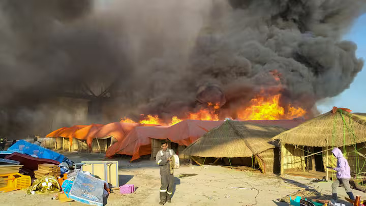 महाकुंभ मेला क्षेत्र में आग लगने की वजह से क्षेत्र में धुआं फैल गया, जिससे लोगों को काफी परेशानियों का सामना करना पड़ा.