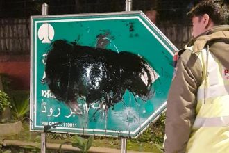 दिल्ली के अकबर रोड पर गौ रक्षा और हिंदू रक्षा दल के कार्यकर्ताओं ने पोती कालिख!