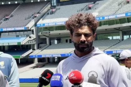 मेलबर्न में शनिवार को ट्रेनिंग के बाद प्रेस कॉन्फ्रेंस करते रविंद्र जडेजा,…